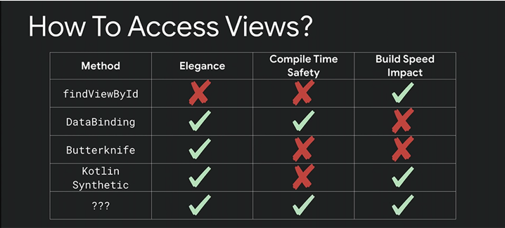 - 모든 뷰에 대한 변수를 선언하게 되고, id가 틀리면 그대로 Null Pointer Exception이 발생합니다.